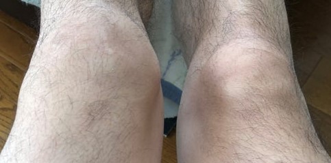 しかし、その後も腫れがひかないどころか、膝に水が溜まり続け、パンパンに腫れ上がっていきました。